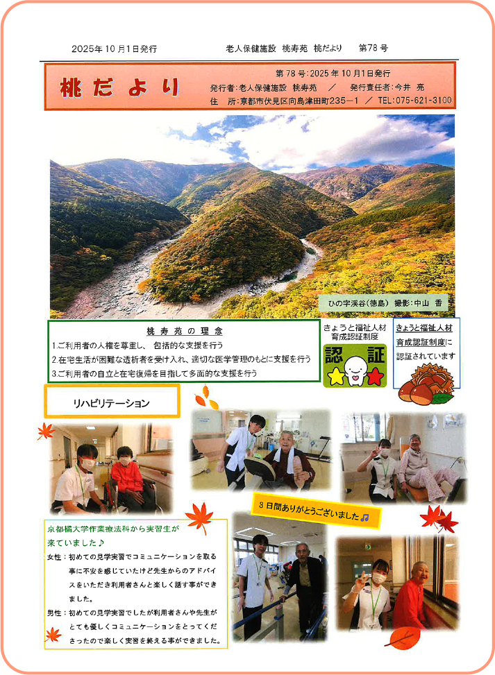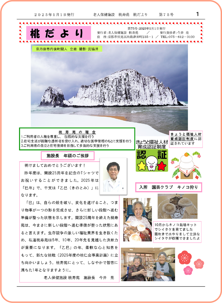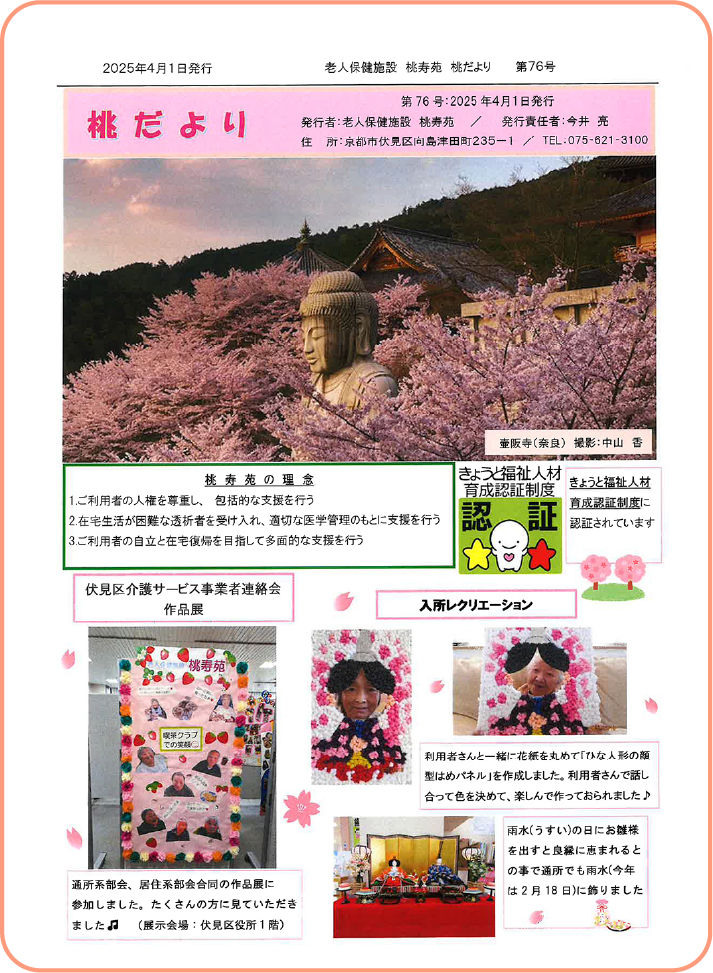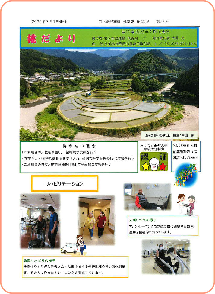 桃寿苑の日々をまとめた広報誌です。